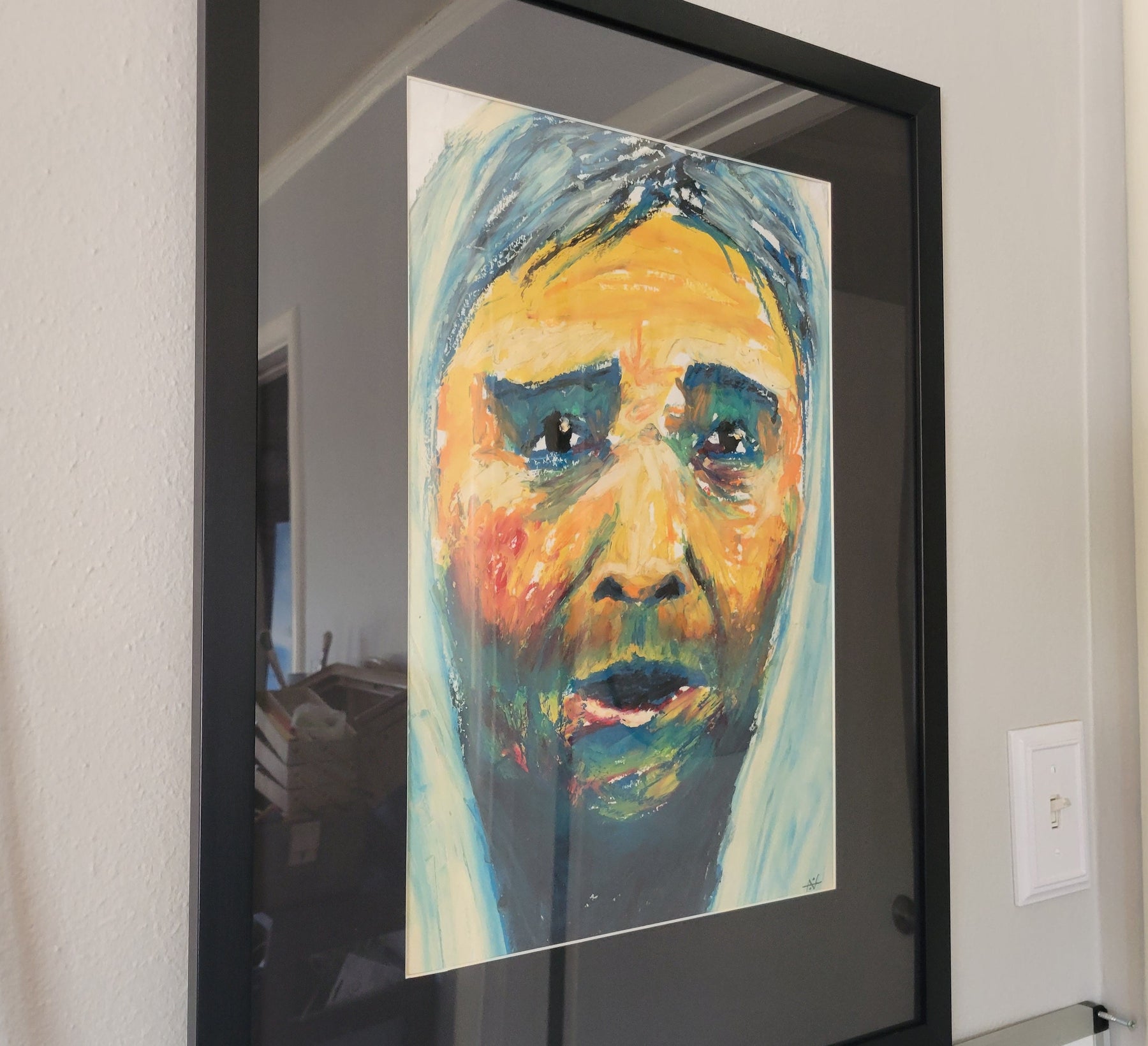 This piece was done by unconventional means - Cattle Markers. Yup, you heard that right. You can get these giant oil based paint sticks at a local feed store (I'm from Texas, Y'all, we gotta get creative!). They come in bright, vivant colors and are used to mark the cattle for the ranchers. Because they are so thick, they leave wonderful paint-stroke textures on the finished product.