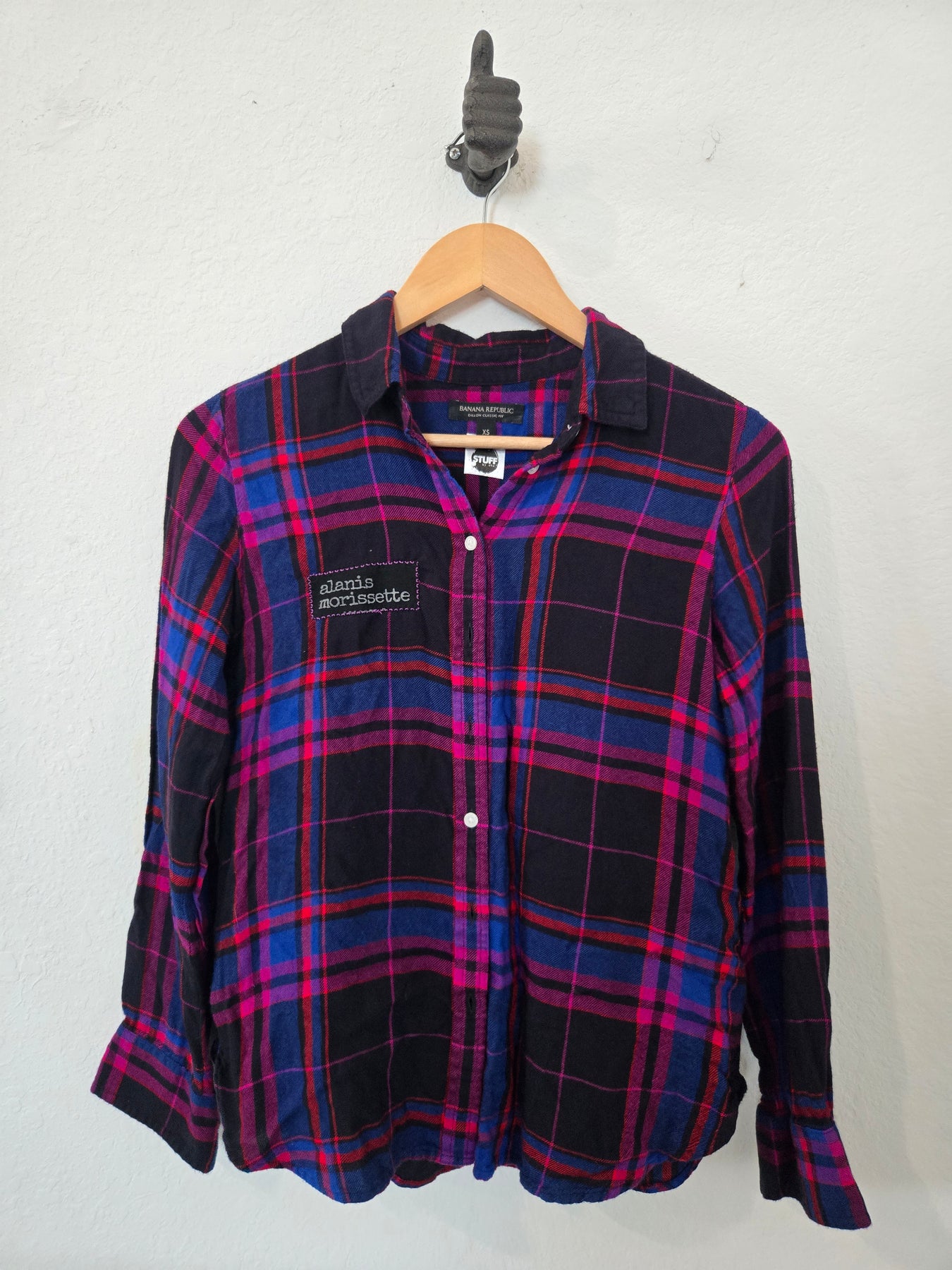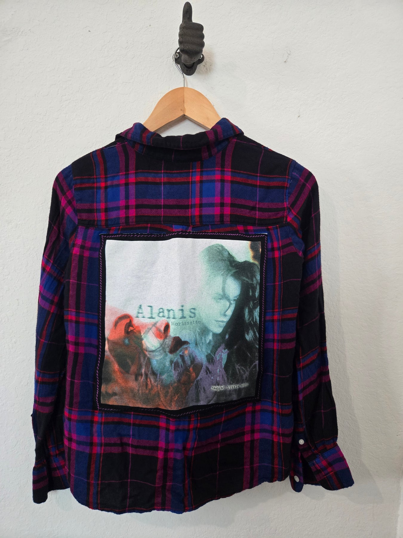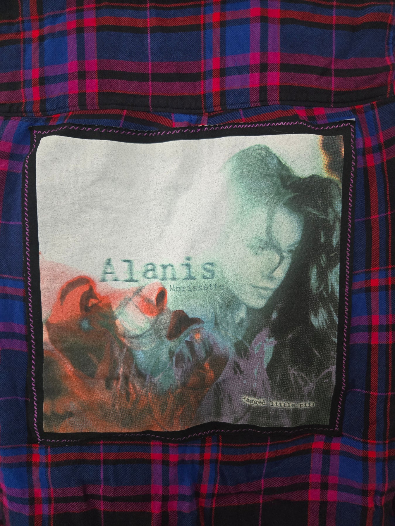 Upcycled, hand-sewn Flannel featuring Alanis Morissette.