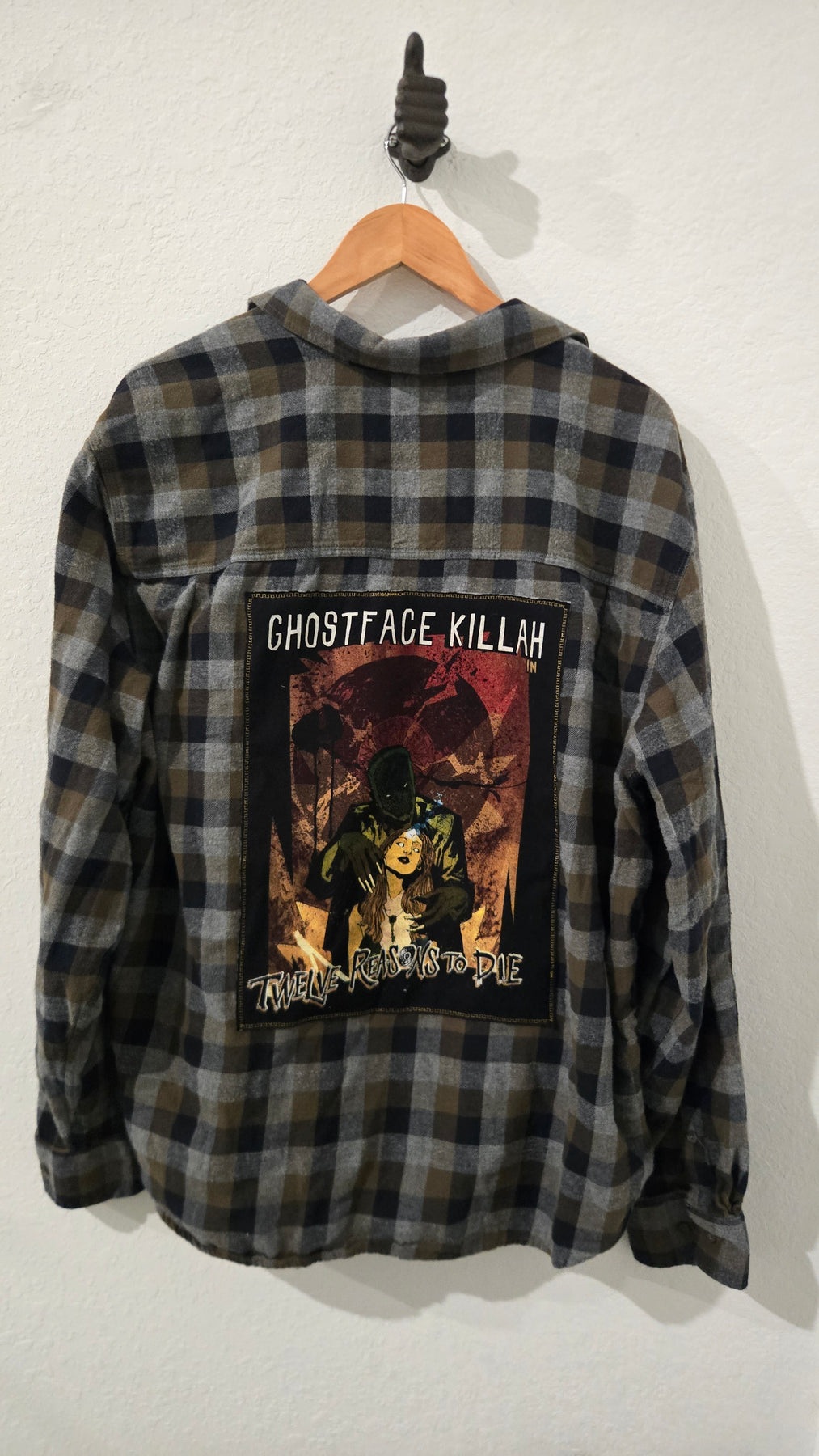 Upcycled hand-sewn Flannel featuring Ghostface Killah.