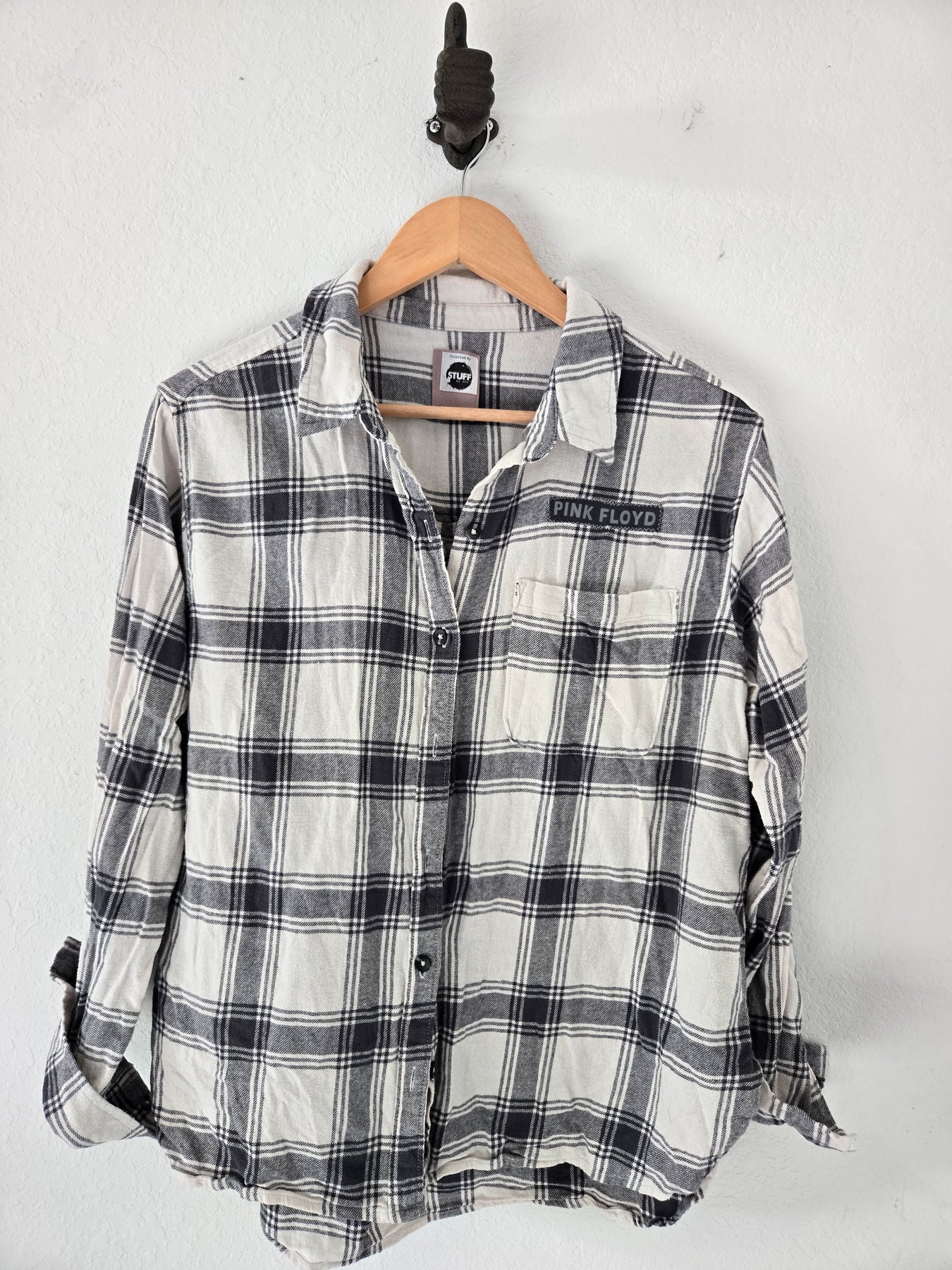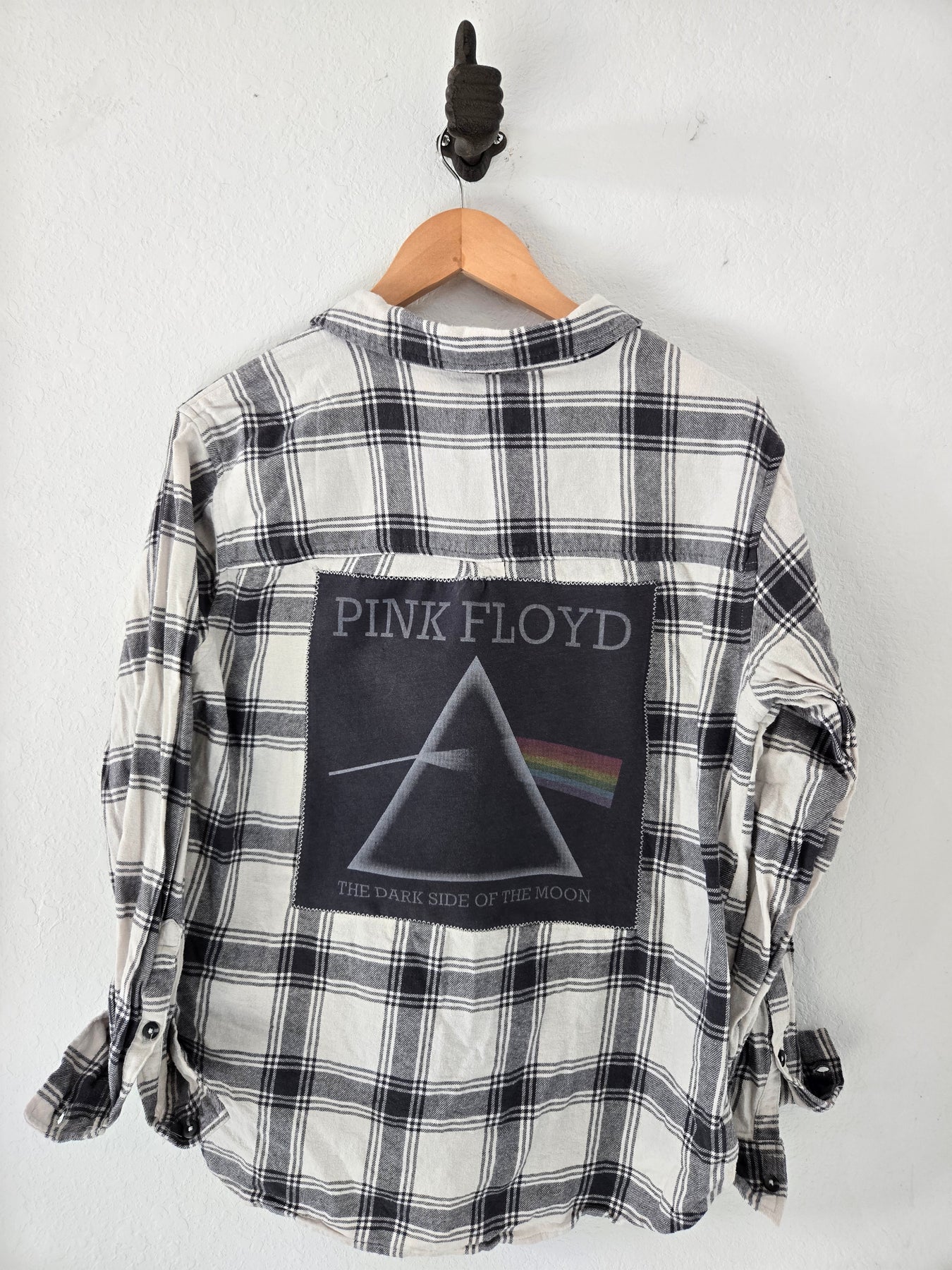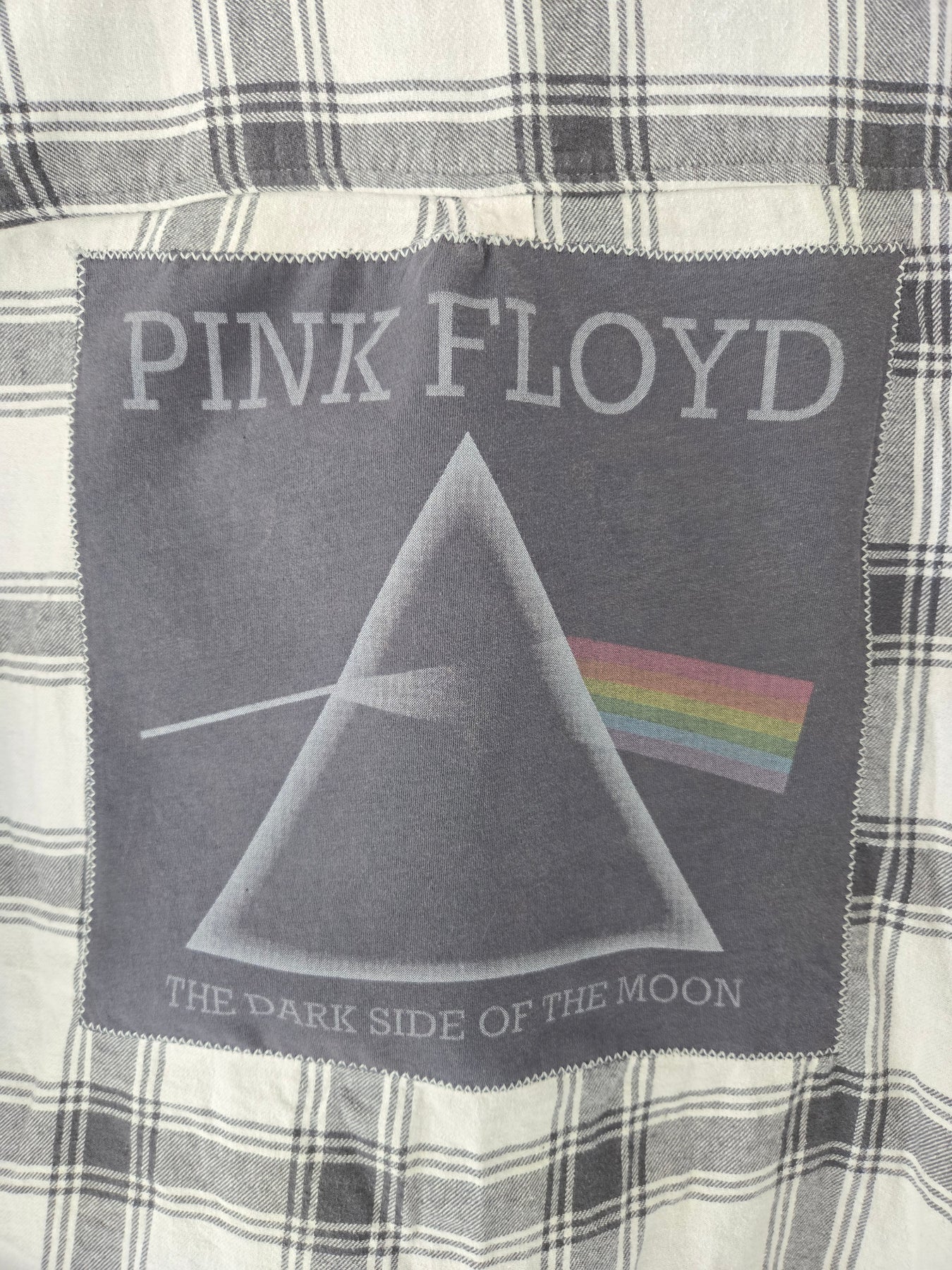 Upcycled, hand-sewn, Flannel featuring the band, Pink Floyd.