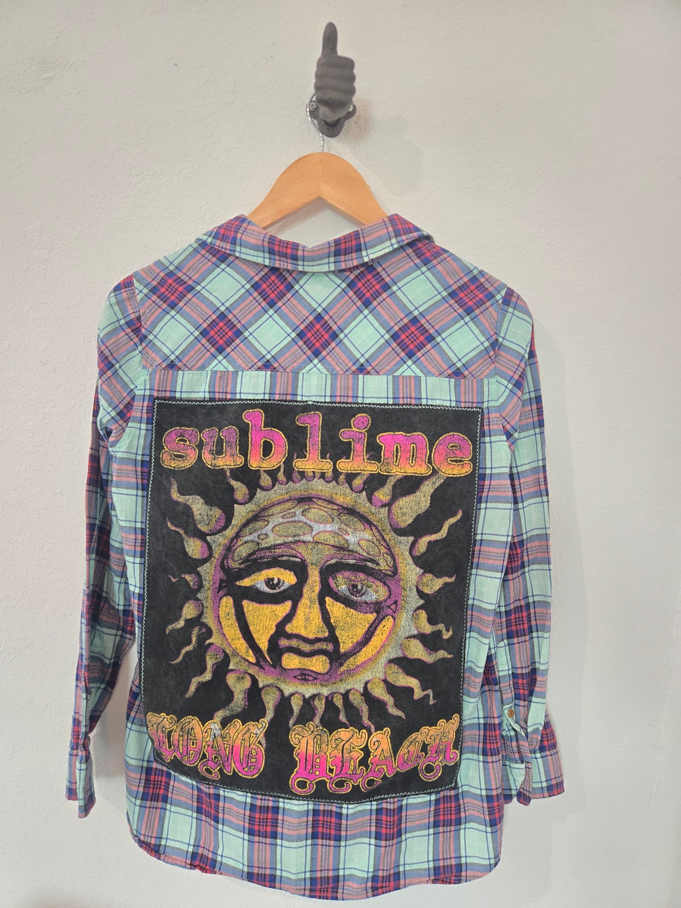 Upcycled, hand-sewn, Flannel featuring Sublime.