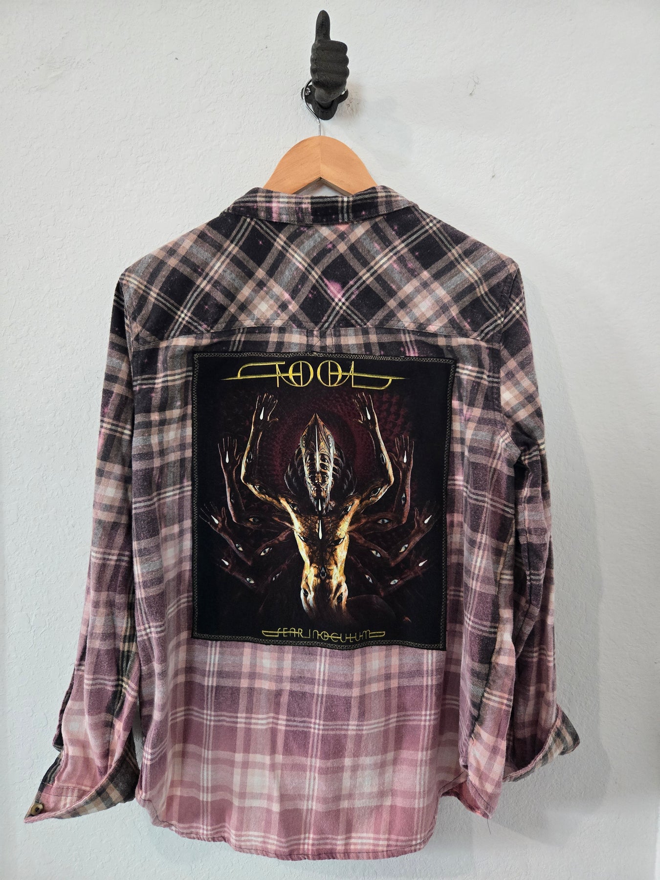 Bleached, Upcycled, hand-sewn Flannel featuring the Band, Tool