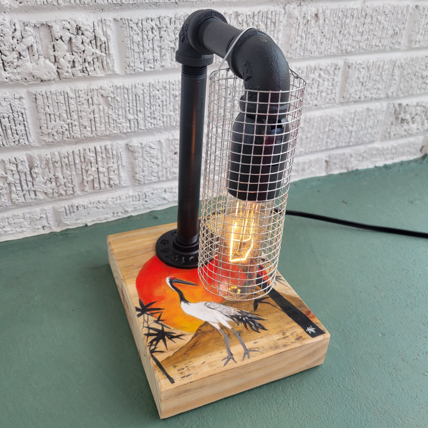 In this table top lamp, I attempted to pay homage to the Japanese Red-Crowned Crane.