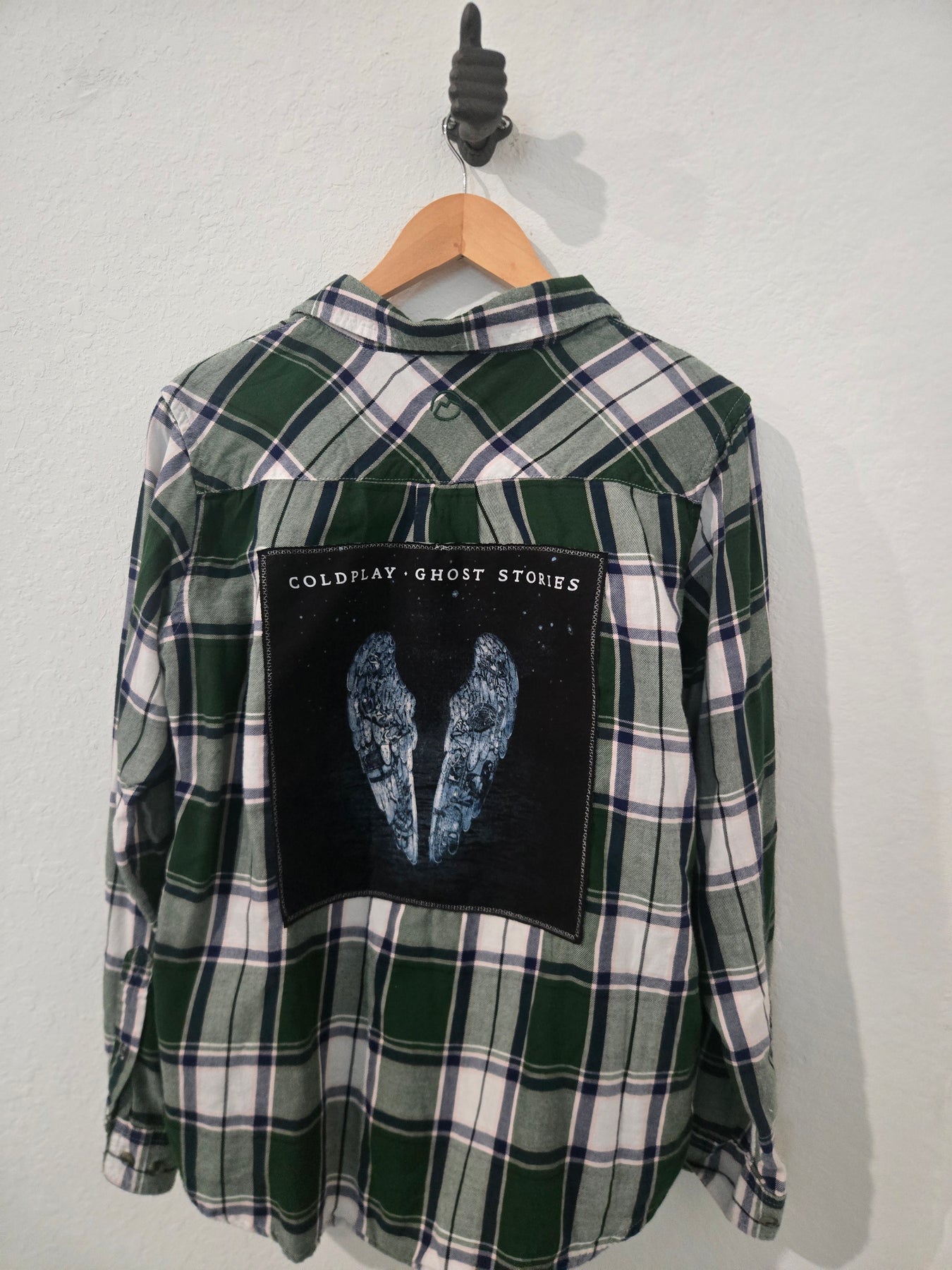 Upcycled hand-sewn Flannel featuring the Band, Coldplay.