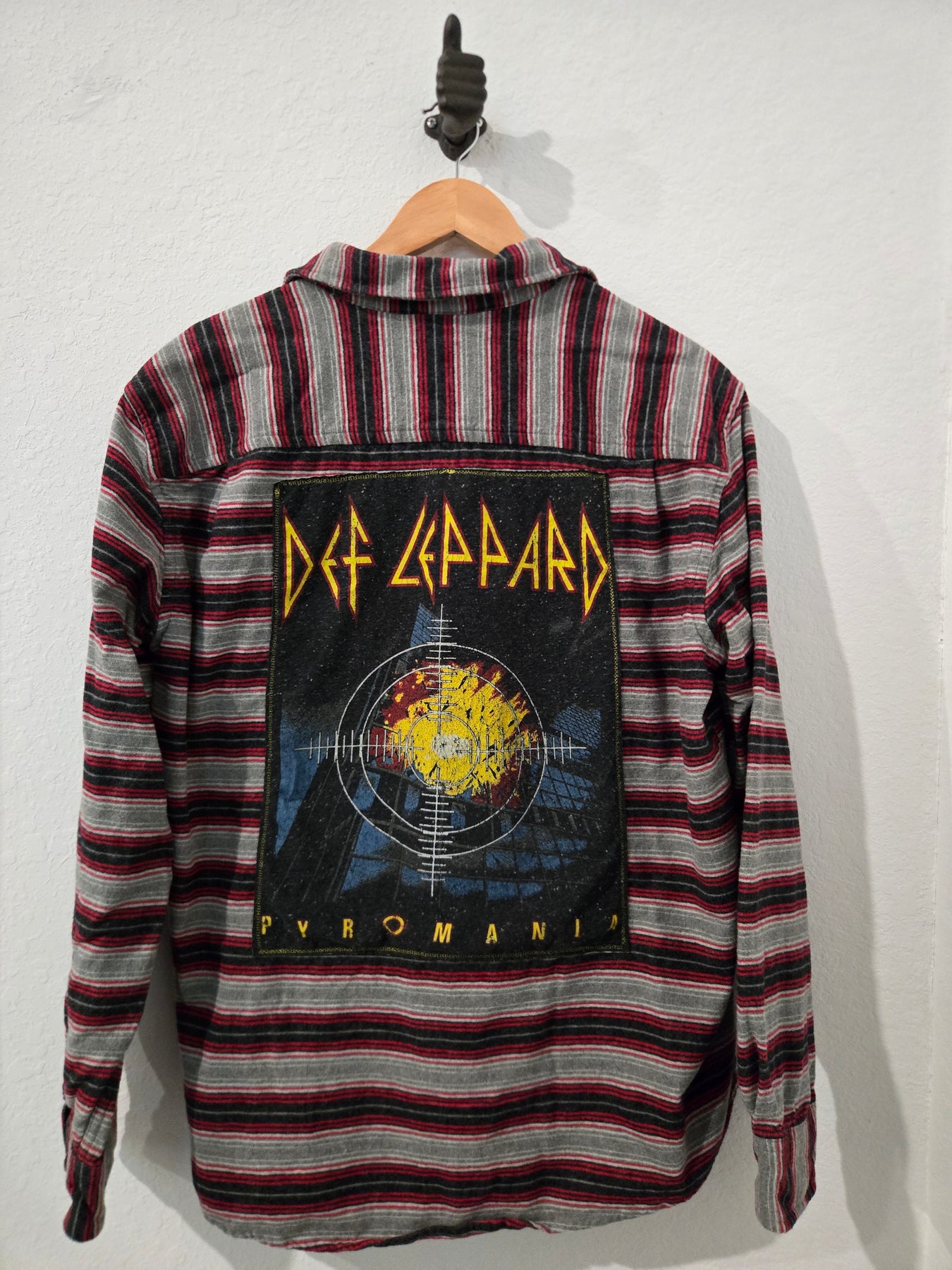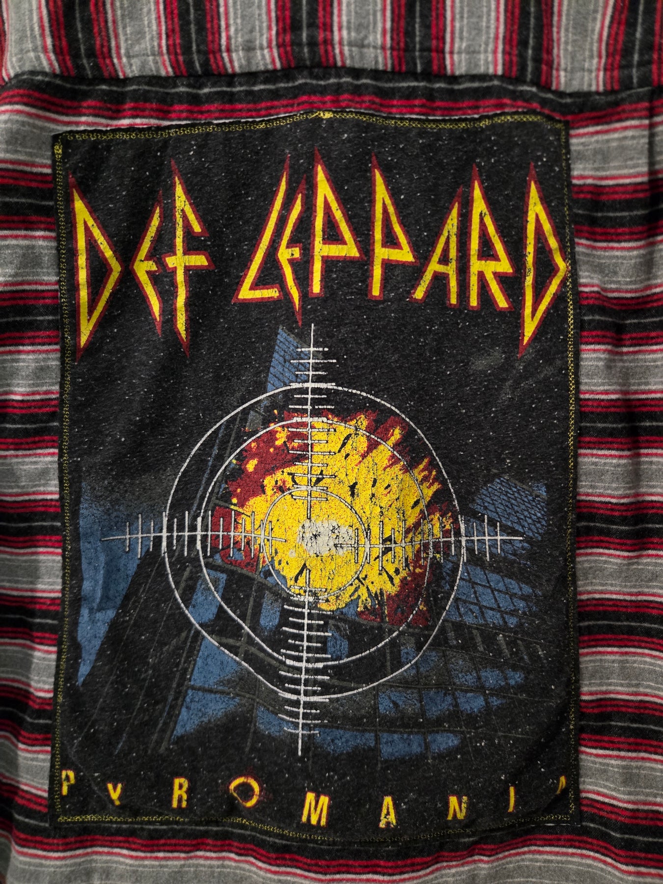 Upcycled, hand-sewn, Flannel featuring the Band, Def Leppard