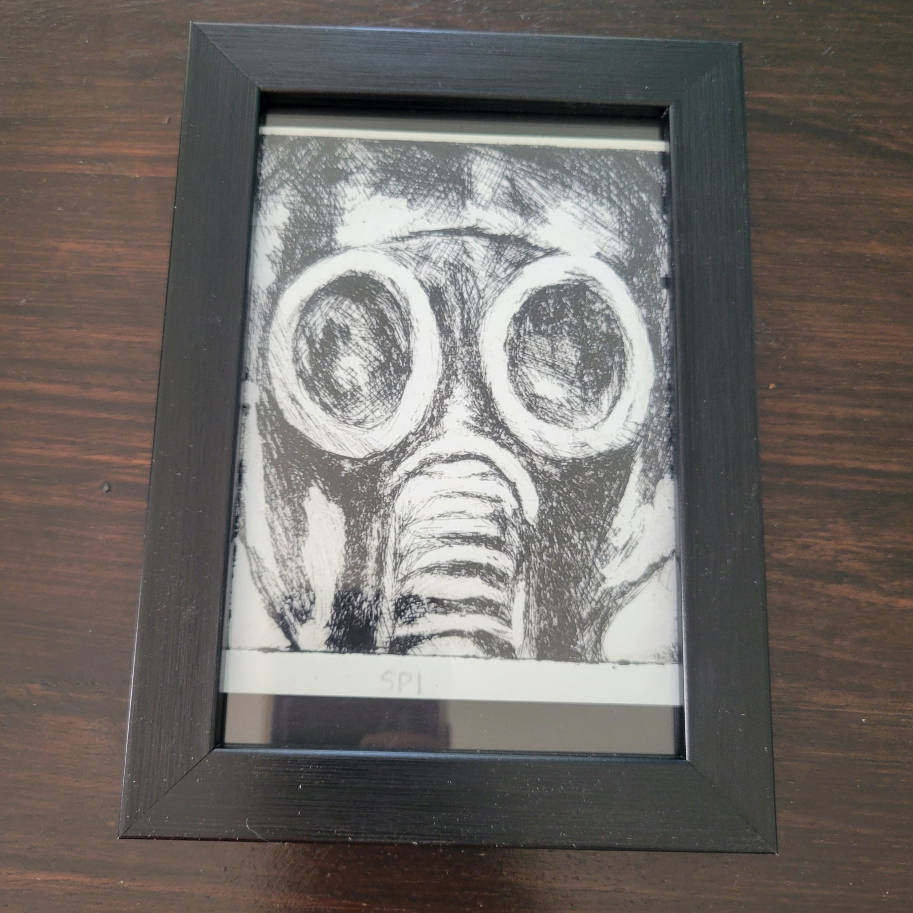 This is a Giclee printed copy of the "Mini Gas - SP1" Copper Etching piece, printed on archival matte-finished paper.