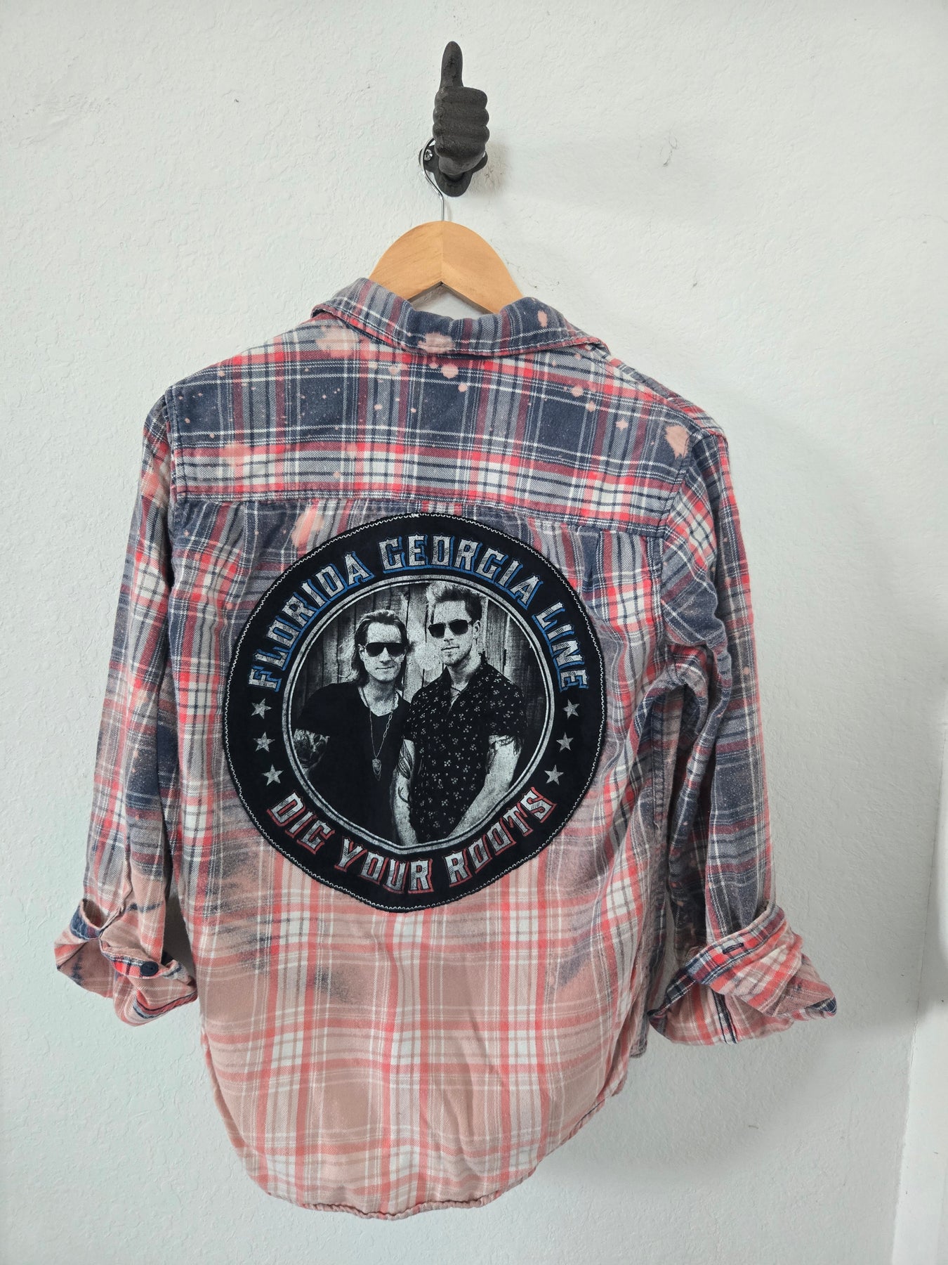 Upcycled, hand-sewn, bleached Flannel featuring Country Artist, Florida Georgia Line