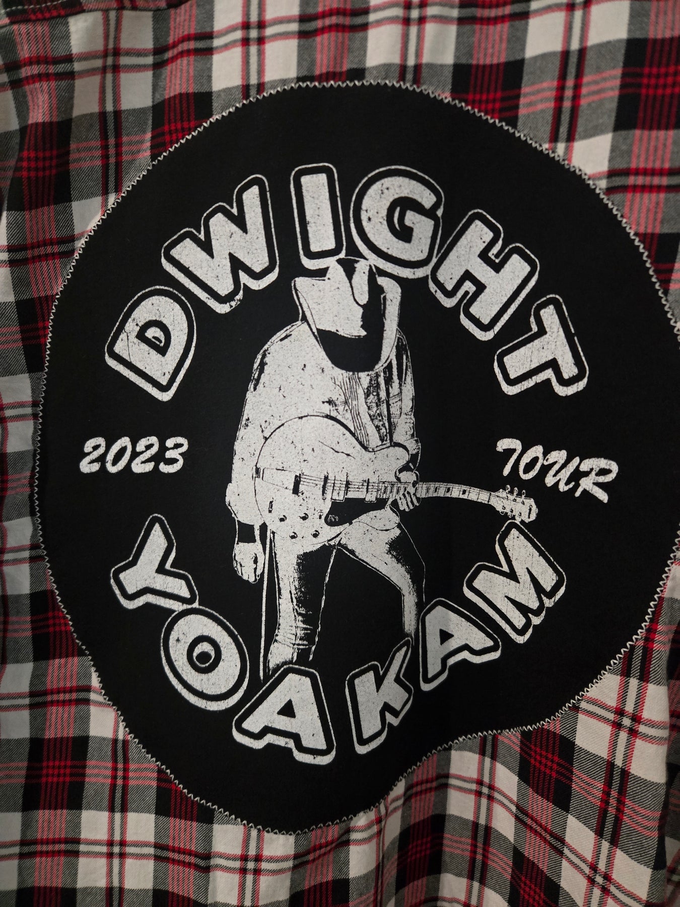Upcycled hand-sewn Flannel featuring Dwight Yokam.