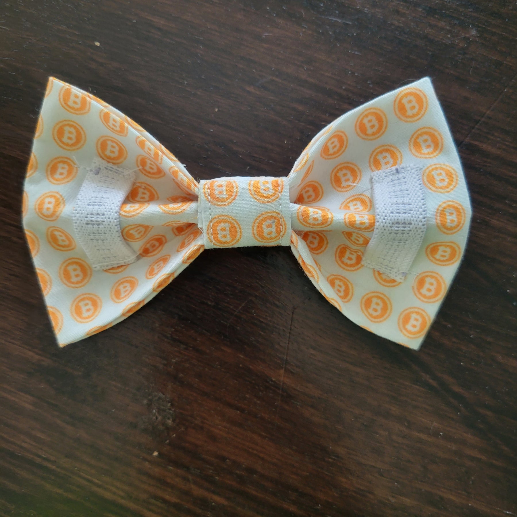 All bowties are soft and have sewn elastic straps that slide into a collar on each "bow" side.  We don't like slippy stuff!