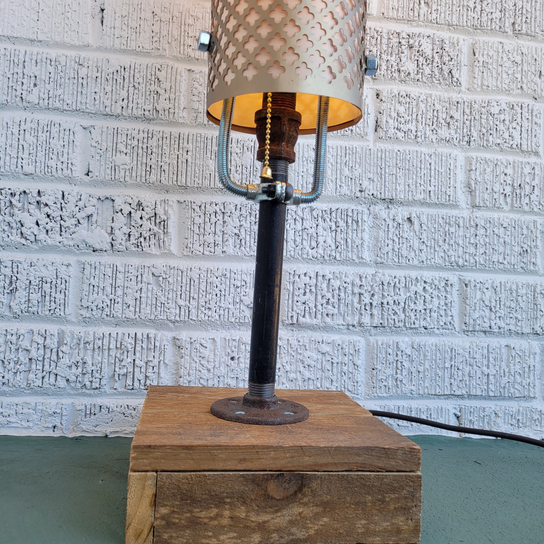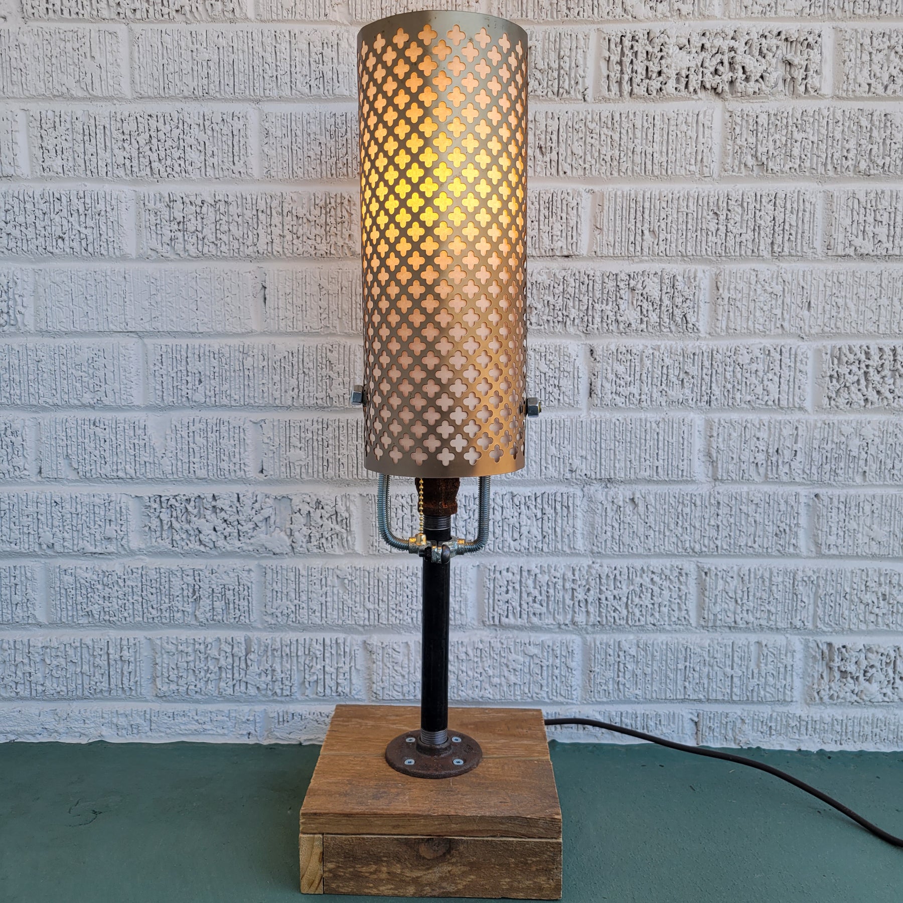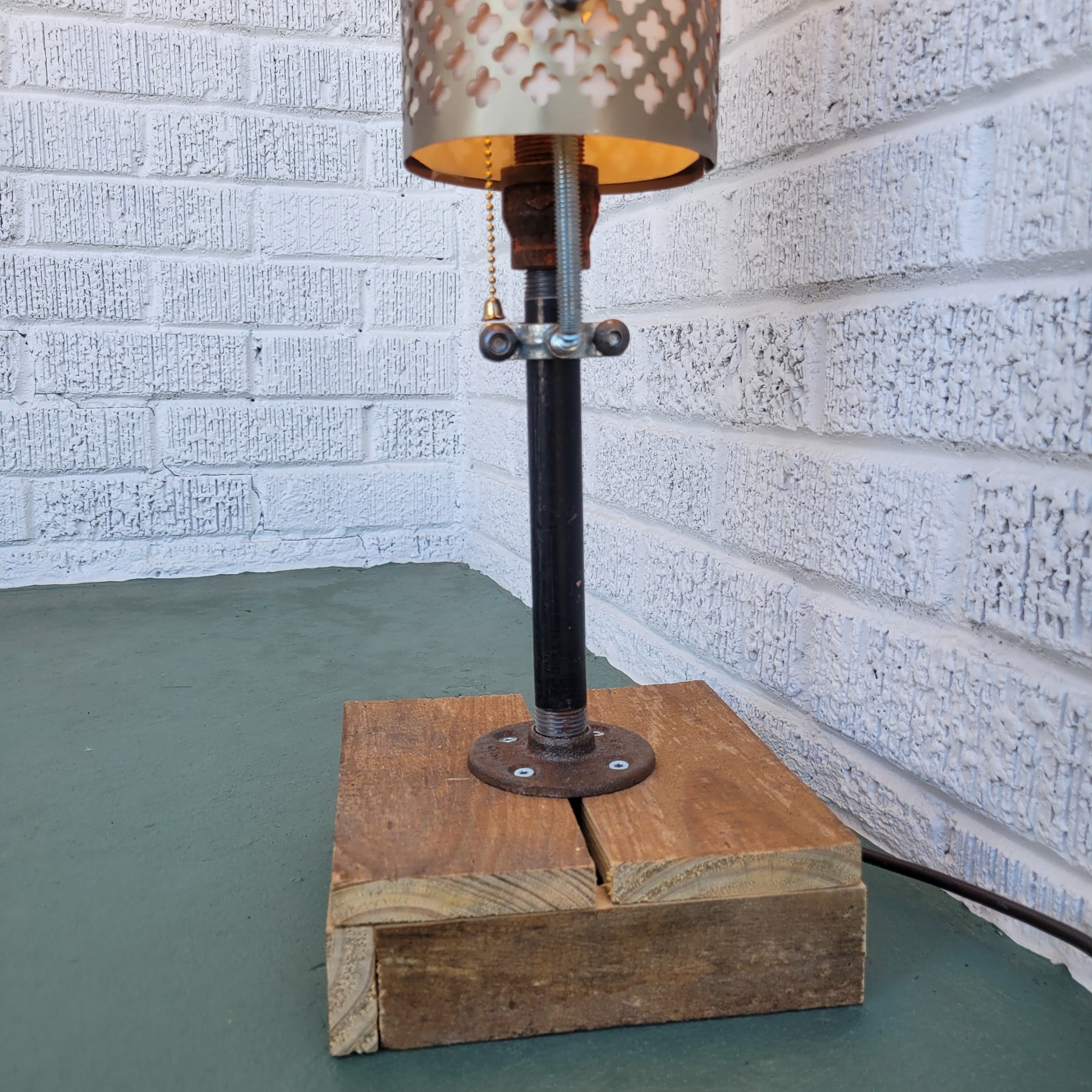 Made from plumbing pipe and a custom cedarwood base.