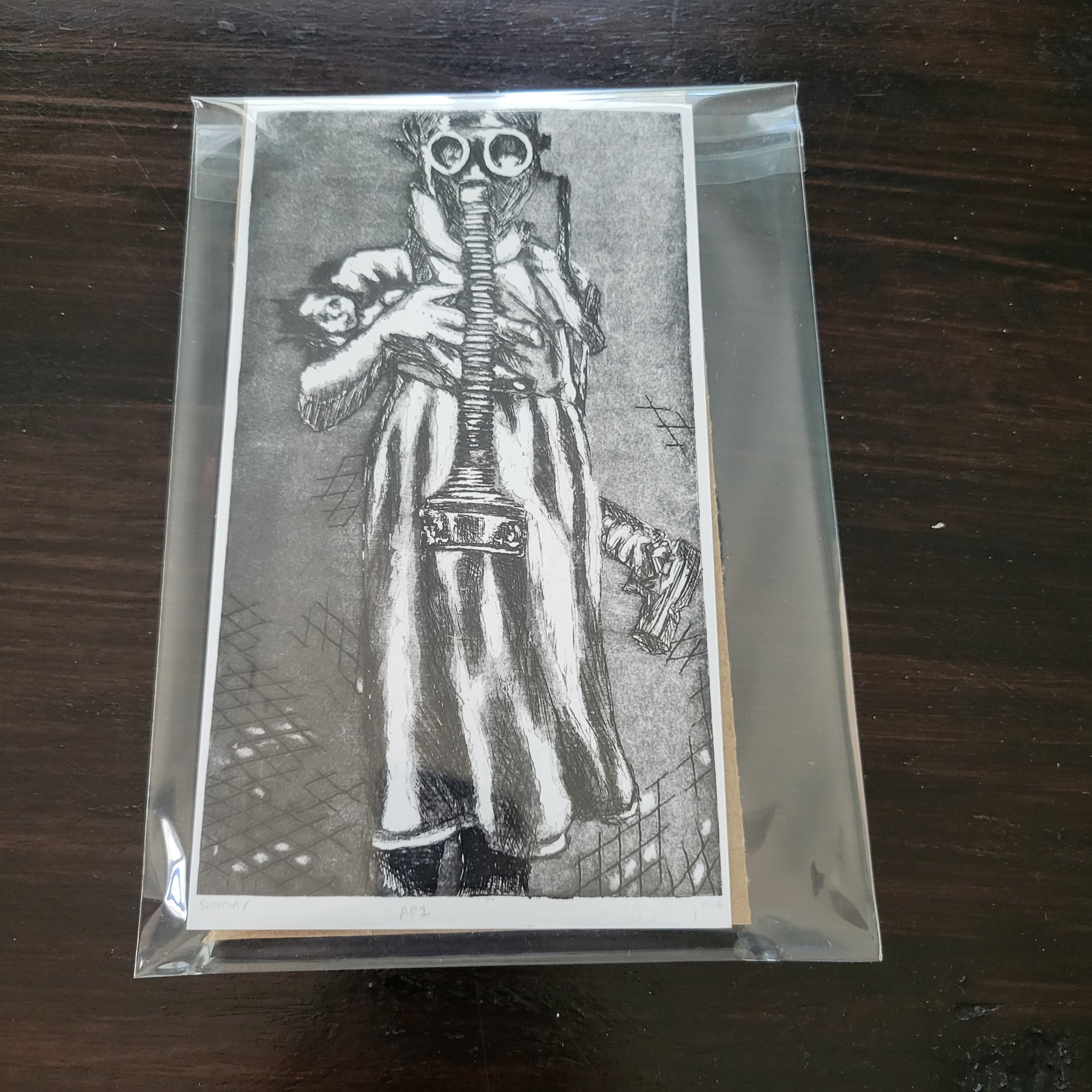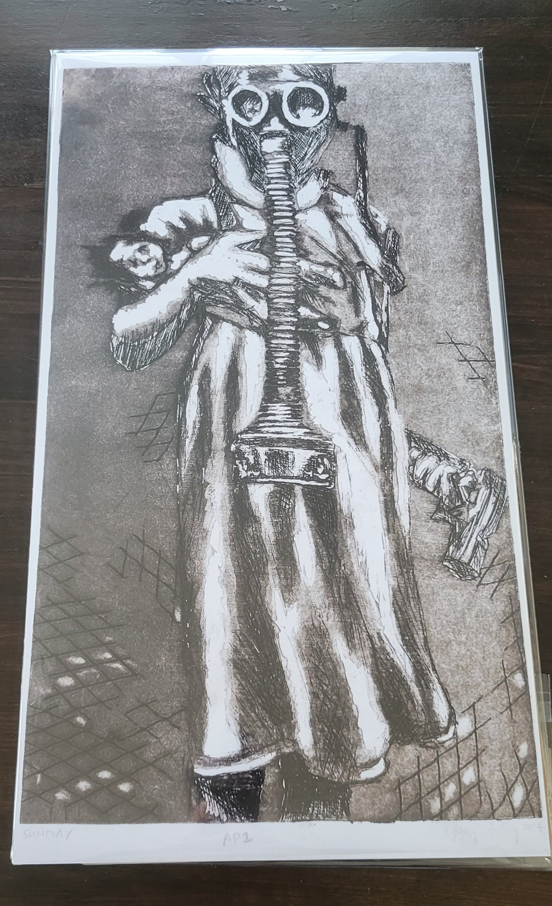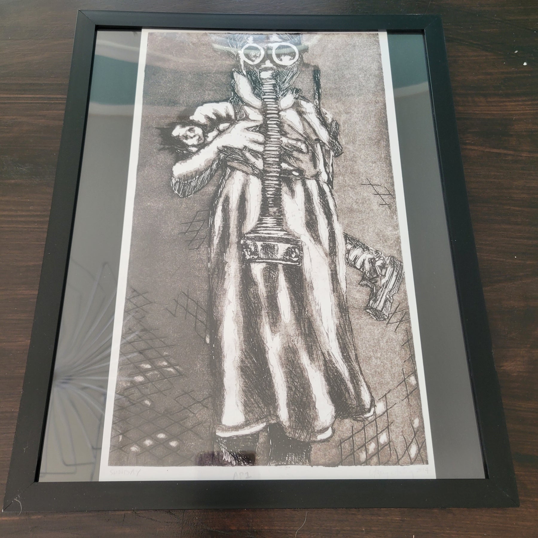 This is a Giclee printed copy of the "Sunday" Copper Etching piece, printed on archival matte-finished paper.